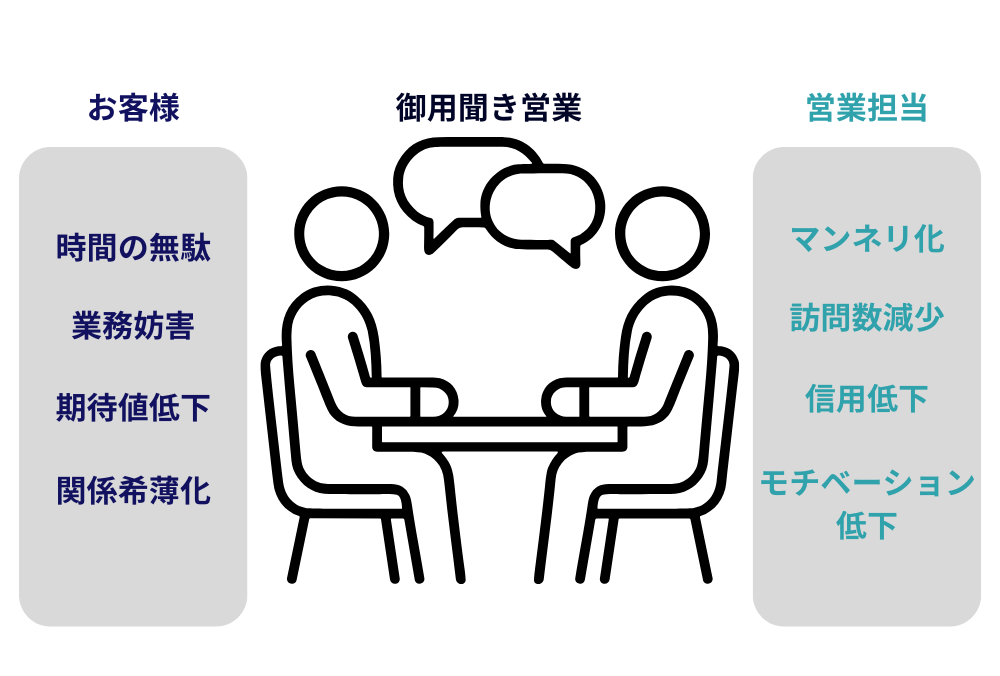 顧客側からすれば、具体的な課題解決のヒントがない御用聞きは、貴重な時間を奪われるだけの行為になりかねません。