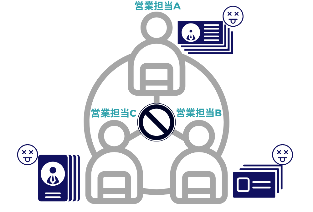 特に問題なのは、その名刺情報が会社全体の資産として共有・蓄積されていないことです。